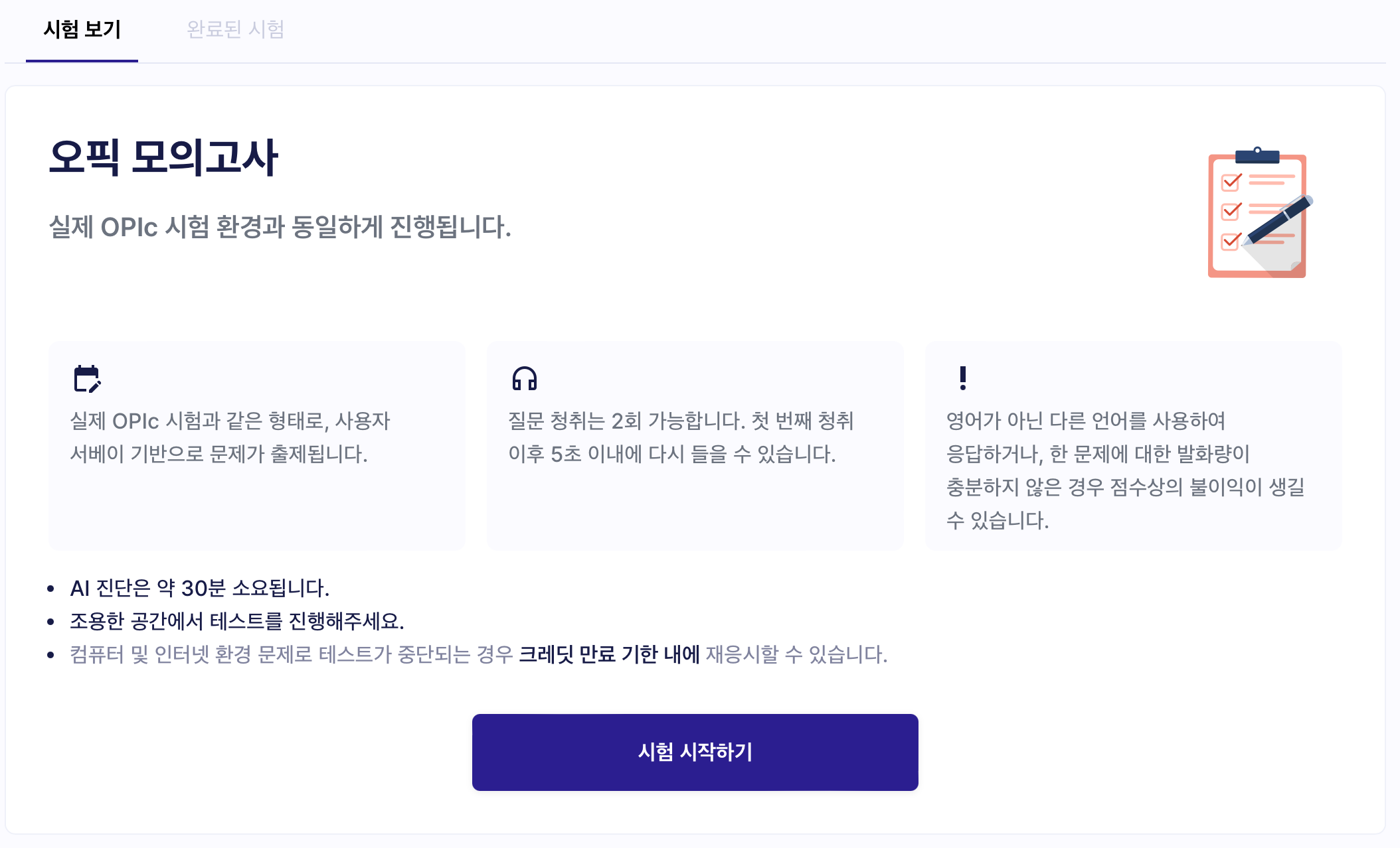 최초 회원가입을 하면 OPIC 무료 모의고사 크레딧 1회권을 지급하는 것 같다.