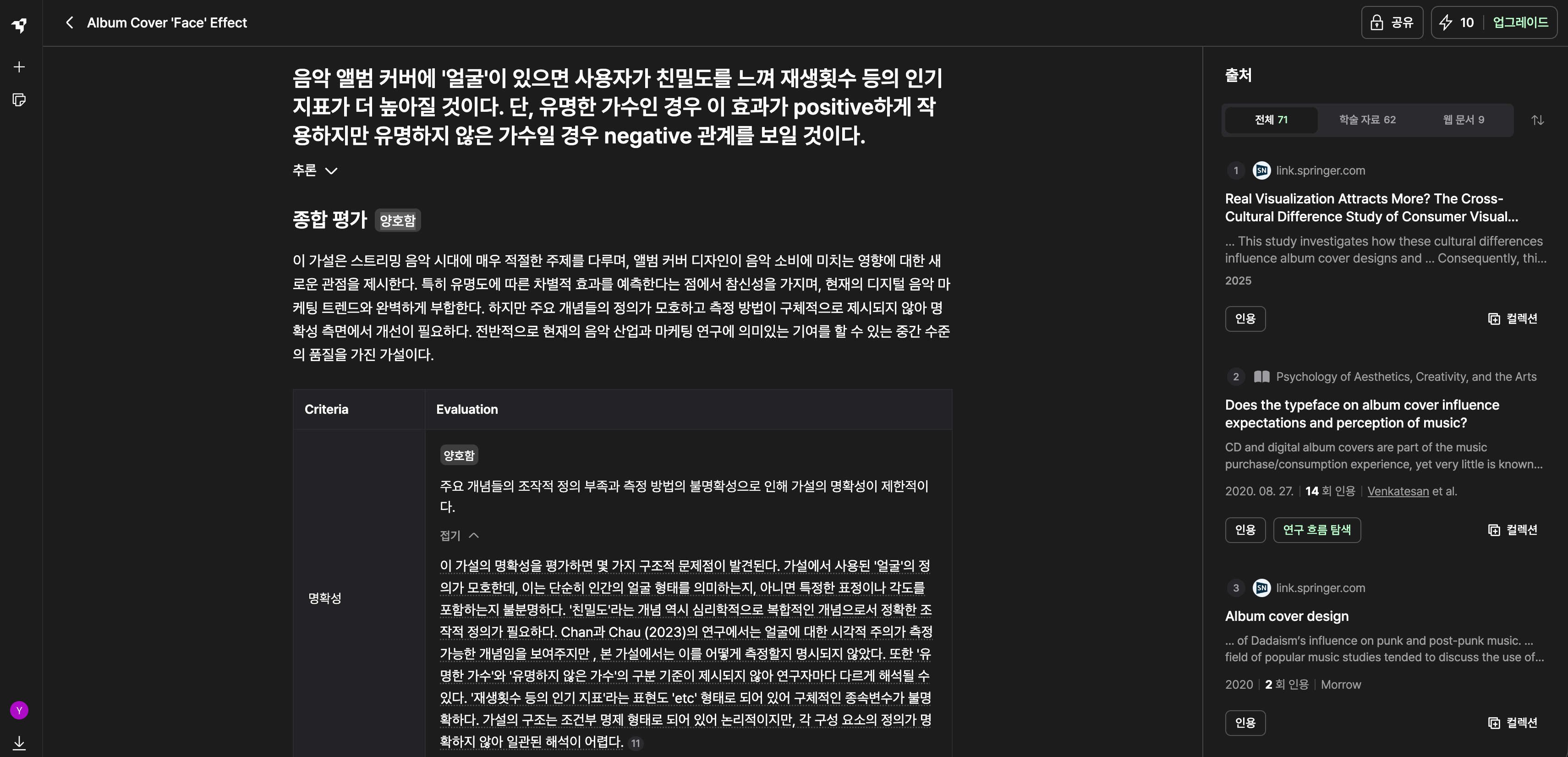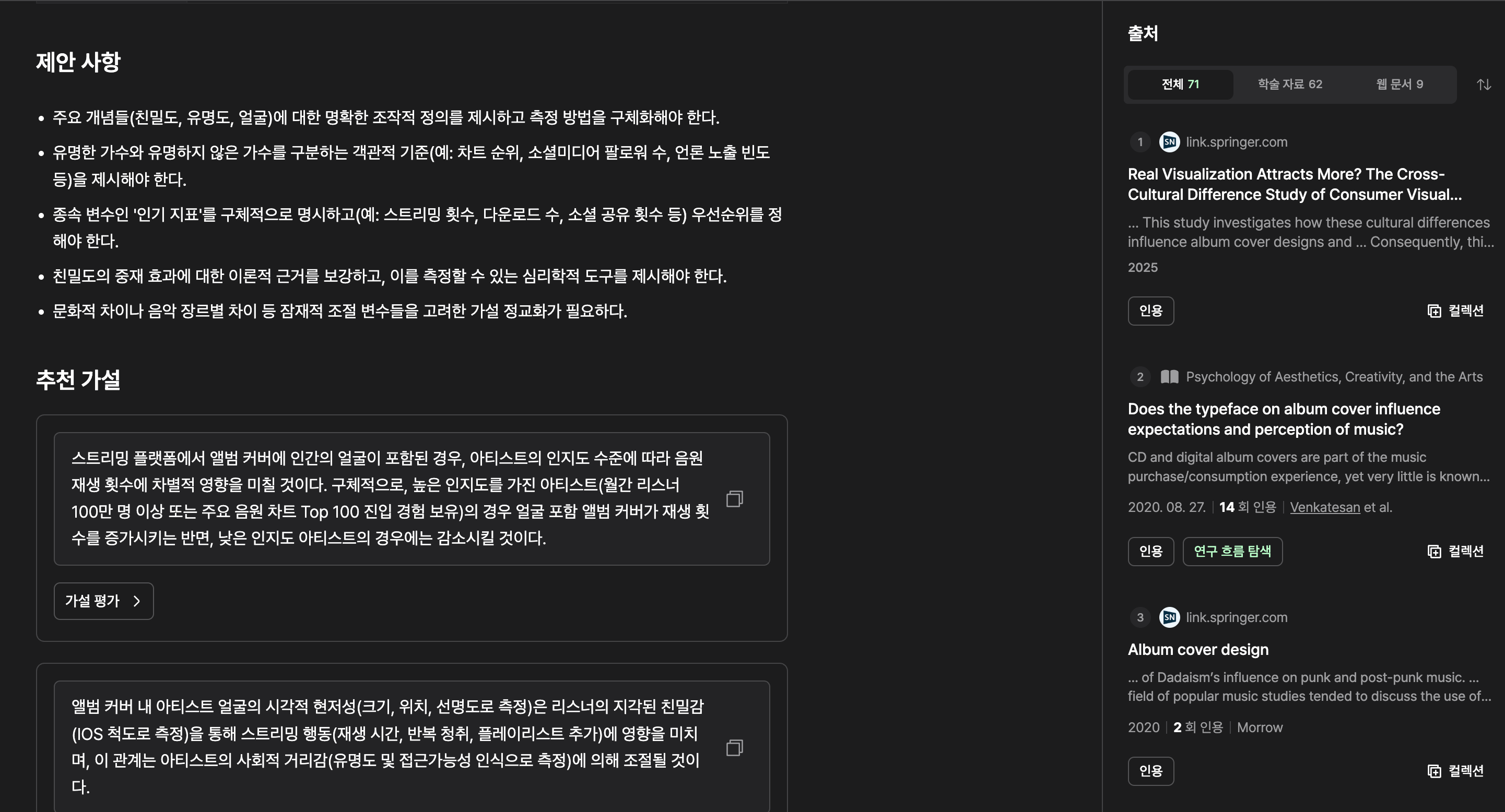 일단은 학술모드 위주로 많이 서칭을 해보고, 어느정도 가설이 좁혀지면 Pro 결제를 통해 Hypothesis + Literature Review 기능을 많이 애용해보고 찐 실사용 후기로 돌아오겠다.