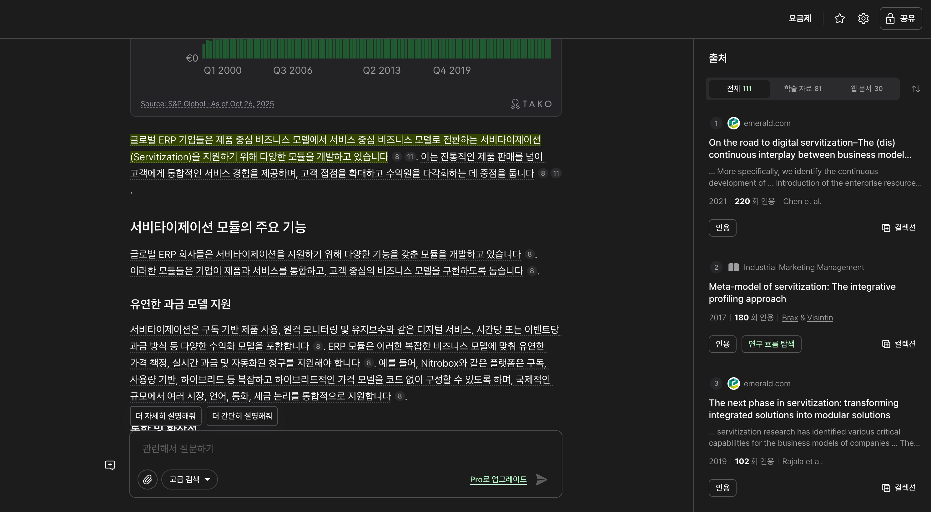 확실히 학술에 특화된 친구인 것 같다. 웹 소스들이 퍼플렉시티보다 더 나은지는 잘 모르겠다. (역시 아직까진 공식 document 들고 오는 건 의외로 구글링이 근본이다.. .)